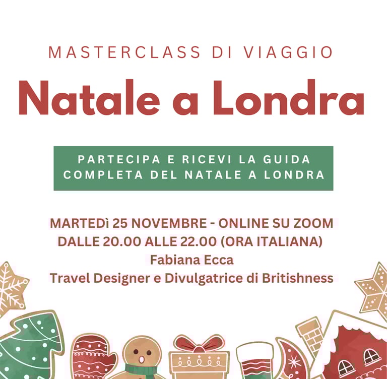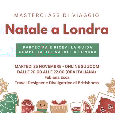 La Masterclass Natale a Londra di Fabiana permette a chiunque di avere tutte le informazioni per organizzare al meglio il proprio viaggio nella capitale britannica e sfruttare appieno tutto quello che la città ha da offrire! La Guida a cui è collegata è ricchissima, ma il vero valore aggiunto è poter passare due ore con Fabiana che sprizza da tutti i pori passione per Londra, il Natale e la Britishness! Qui si vede la differenza rispetto ad altre guide o travel content creators. Non importa se pensate di conoscere Londra già bene, Fabiana sfodererà delle chicche e vi metterà una voglia pazzesca di partire al più presto. Raccomandatissima.